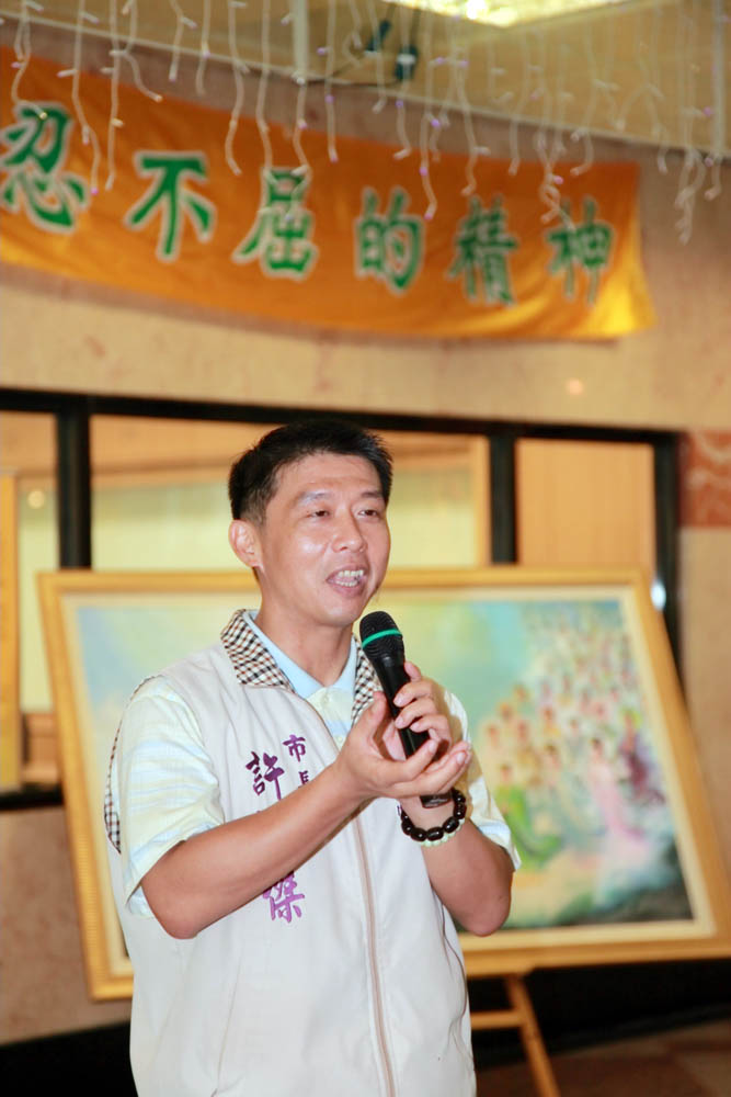 ![]() 凤山市长许智杰表示:“今天美展展出的作品传达法轮功传遍世界的历程,每一幅画背后都有一段感人的故事。” |