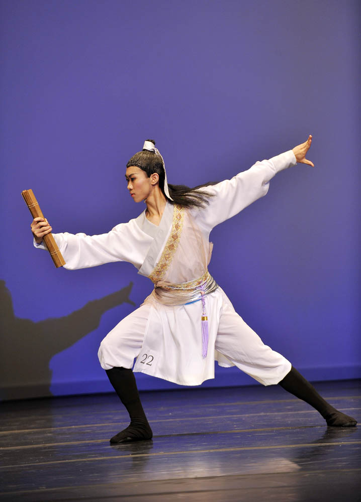 ![]() 第三届“全世界中国舞舞蹈大赛”初赛,少年男子组22号选手薛心坛表演的《少年韩信》。 |