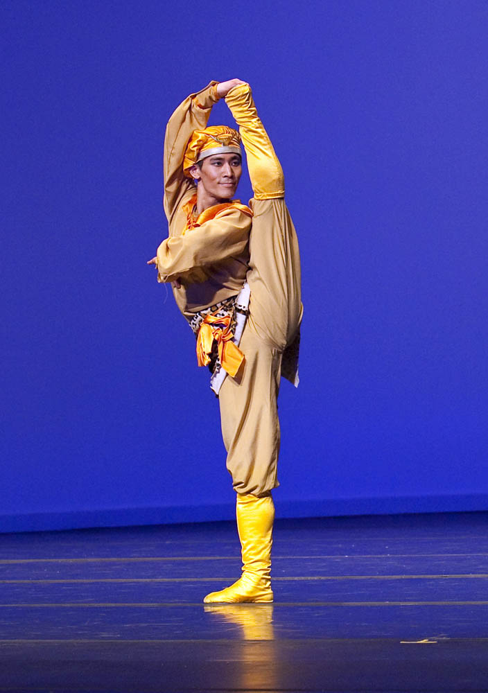 ![]() 第三届“全世界中国舞舞蹈大赛”初赛,少年男子组25号选手廖若山表演的《十面埋伏》。 |