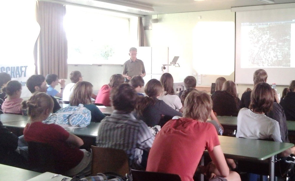 【明慧网二零零九年六月二十一日】“弥勒伸腰”,“抻”, “放松”,祥和的炼功音乐使德国卡尔-弗里德里希-高斯 (Carl-Fridrich-Gauss,CFG)高中的学生感到一阵轻松愉快,七十多位同学和教师饶有兴趣地跟随着滕·施为格( Teng-Schwaegerl) 女士在人权报告会的间隙尝试了法轮功的第一套功法“佛展千手法”。