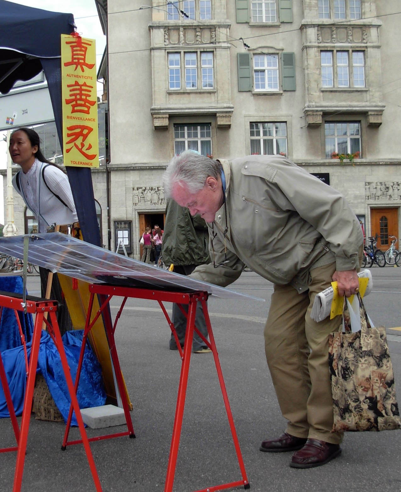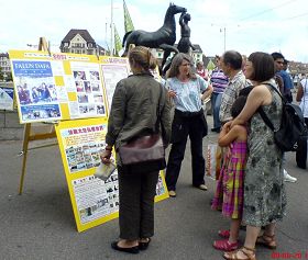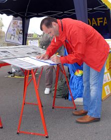 霍力仲曼(Horizonman)先生看到展板后主动签名,呼吁制止中共活摘器官的罪行。法轮功学员向他表示感谢时,他立即说道:不用谢我,应该谢谢您,谢谢您在这里做的这一切。