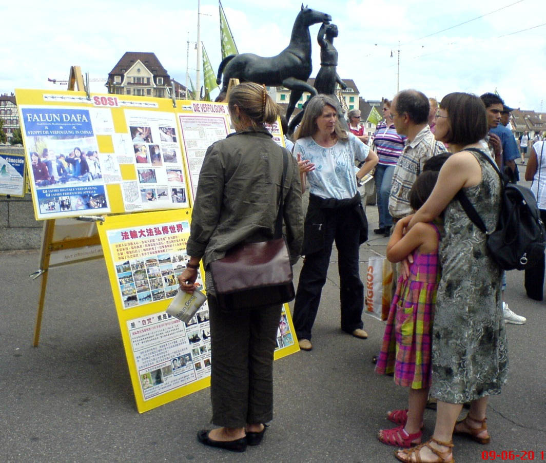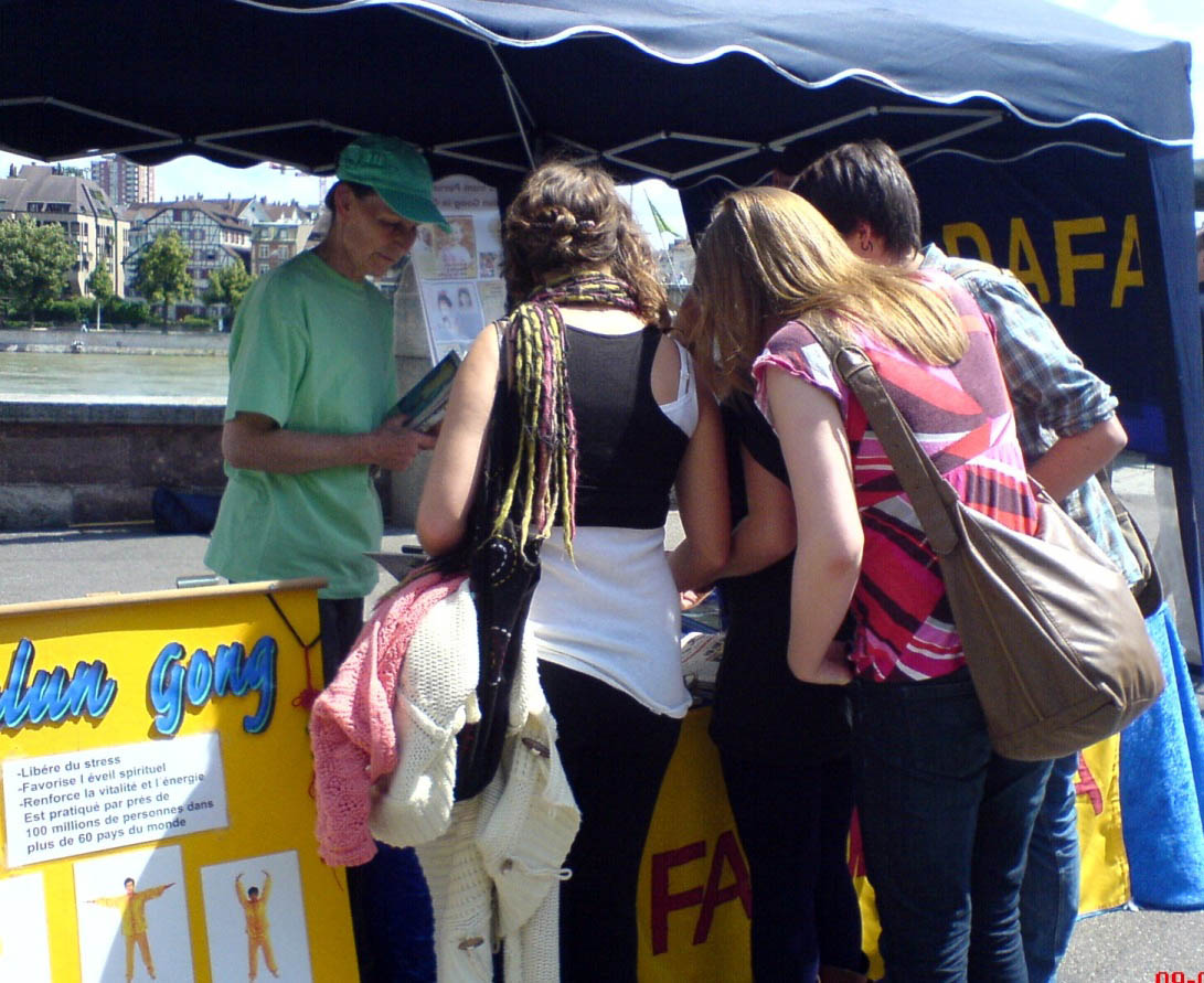当天信息日的地点就在莱茵河畔,来来往往的路人中有不少是游客,当然也少不了中国人。有一位来自印尼的华人在看了展板后主动询问这是怎么回事。法轮功学员告诉他和同行的女孩:法轮大法弘传世界一百一十多个国家和地区,但是因为中共不允许人们按照真善忍做个好人,开始了对法轮功学员的迫害。学员还告诉他们中共活摘法轮功学员器官的罪行。旁边来自中国的女孩看着法轮功学员受迫害的照片感叹:真是太惨了。最后她表示要退出中共的一切组织。