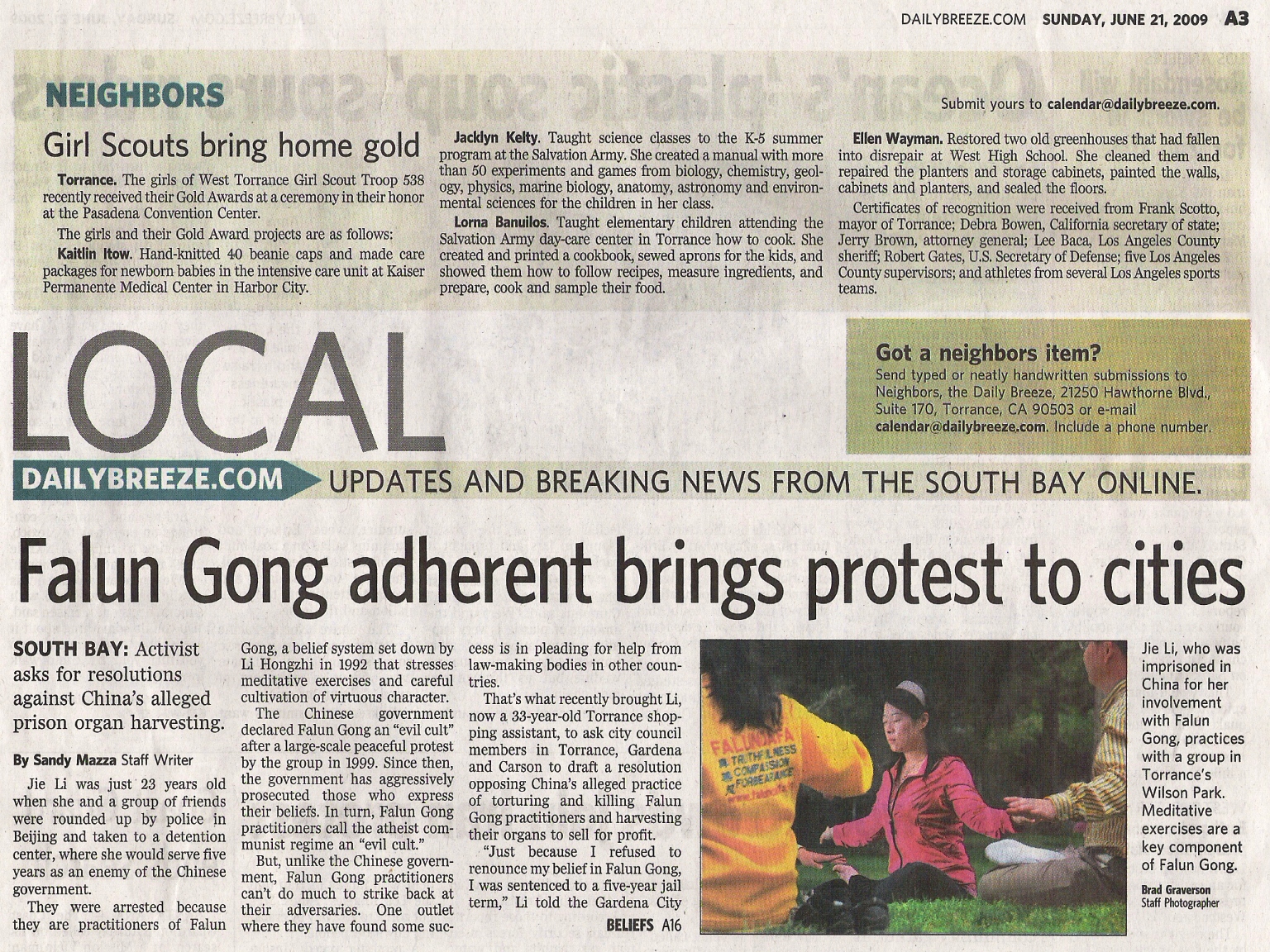 ![]() 《Daily Breeze》六月二十一日的报道 |