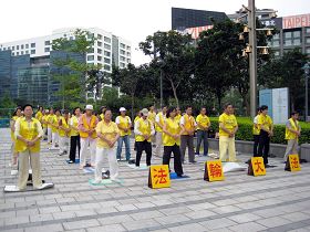 ![]() 法轮功学员每日下午四点以后定点在台北一零一大楼对面的信义广场炼功 |