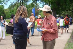 这十几位有缘的中国人与明慧学校的老师交谈了很长时间,临走时他们每人都拿了一本真相小册子,并表示会从下星期开始到附近的炼功点去学炼法轮功。