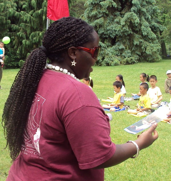 多伦多律师乔(Joel Etienne)当天带着妻子和五岁的女儿也来到了中心岛,当他遇见法轮功小弟子们在炼功时,兴奋地说:“你们做得真好,令这么多的人知道法轮功,真为你们高兴。我的女儿也说要跟着这帮小朋友们一起炼功。”