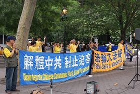 法轮功学员王文怡博士说,在中国大陆还有千千万万个法轮功学员每天都面对着酷刑折磨,轻者被打致残,重者致死亡,或被活体摘除器官,“我们呼吁全球民主国家认清中共反人类、反人性的本质,制止中共长达十年之久的灭绝性迫害。我们也相信,这场迫害将以中共解体的方式来结束。”