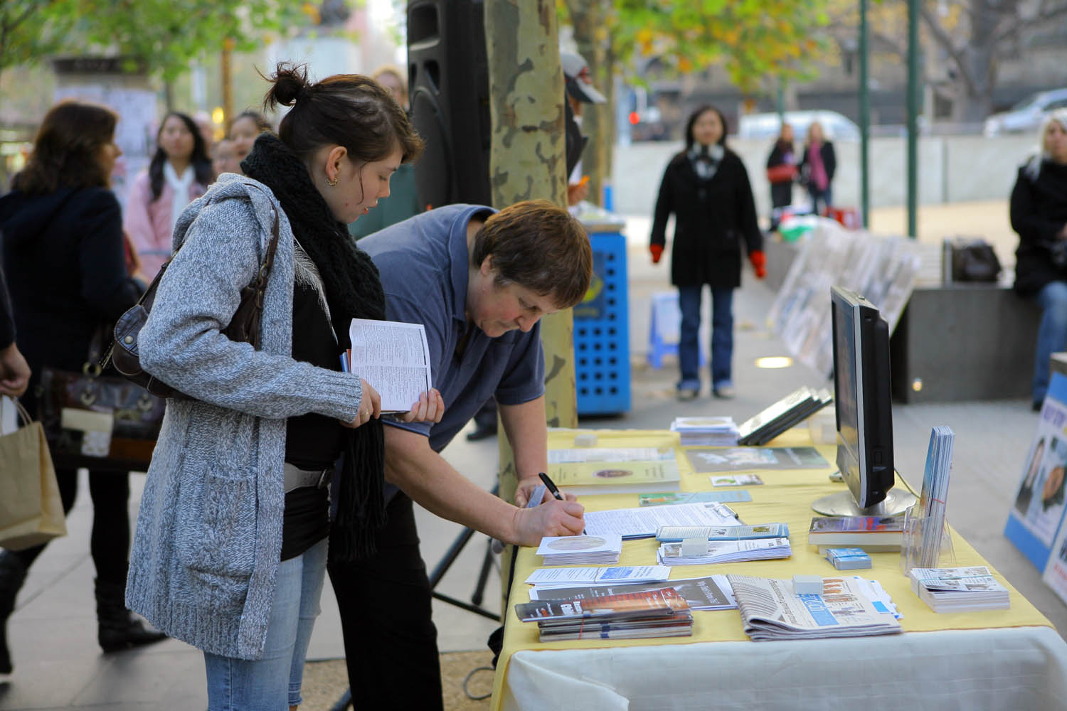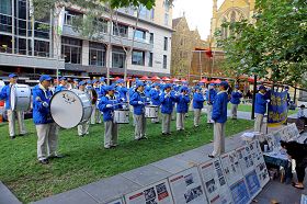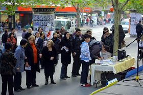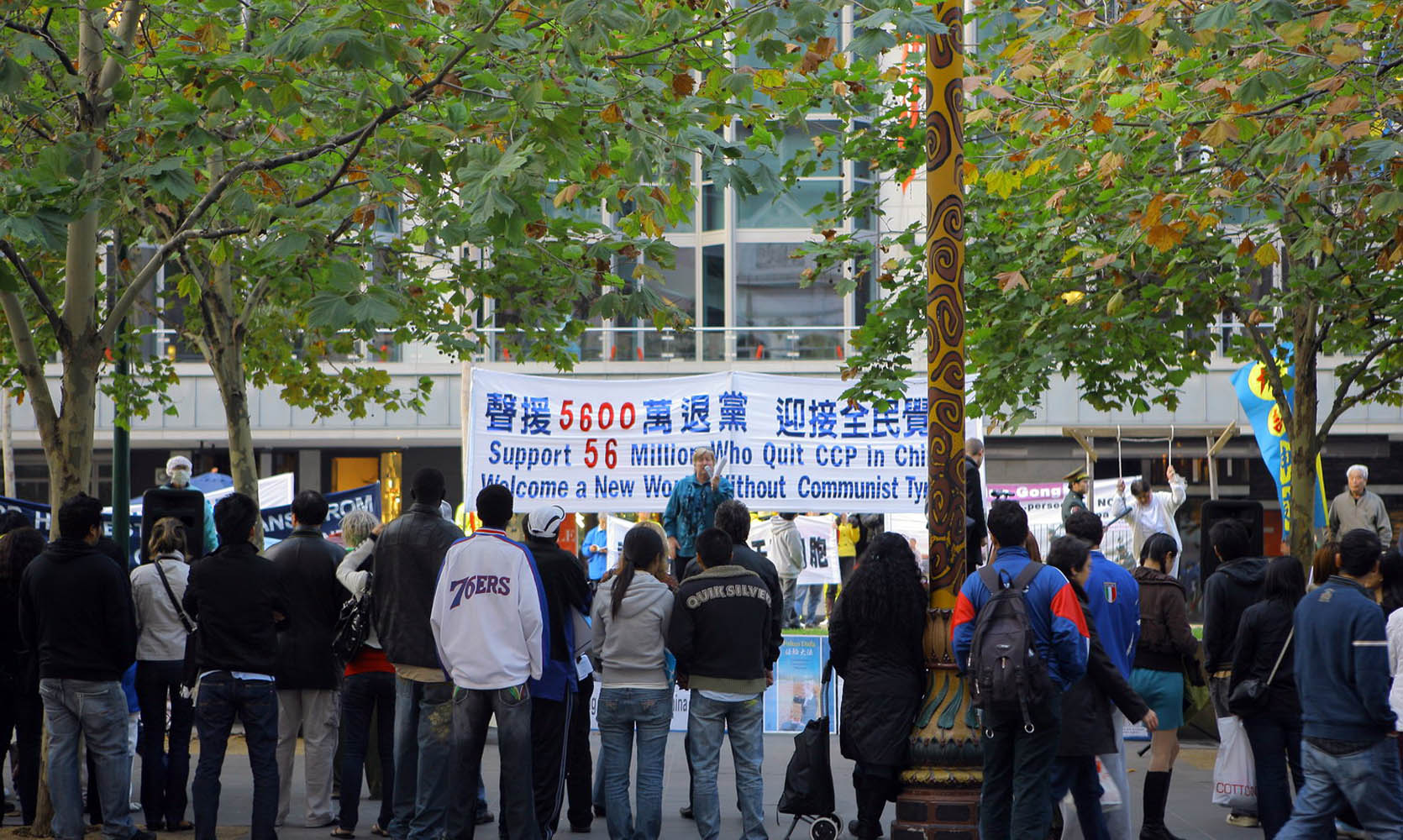 ![]() 墨尔本市中心城市广场上的退出中共集会使众人驻足观看 |
