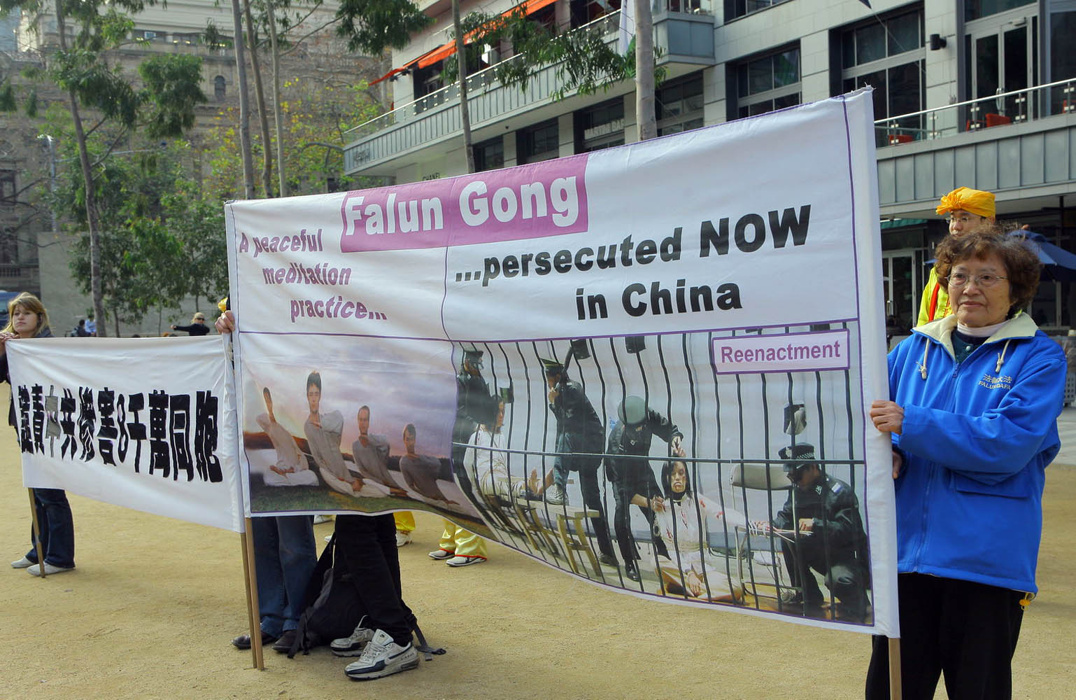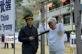 ![]() 模拟酷刑,揭露中共迫害法轮功 |
