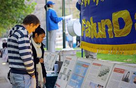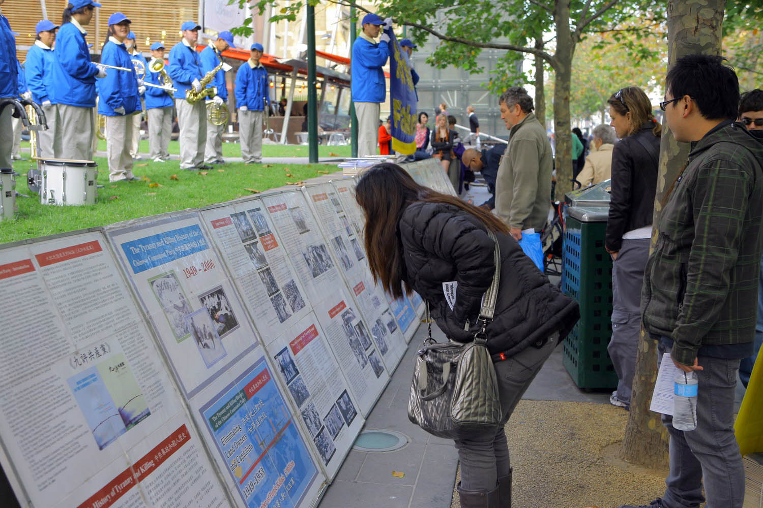 ![]() 民众凝神观看揭露中共暴政的展板 |