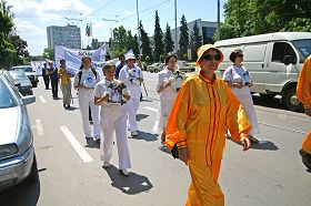 ![]() 来自巴尔干各国的法轮功学员举行游行 |