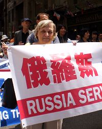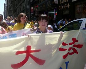 来自俄罗斯莫斯科七十岁的祖艾(Zoya)修炼七年了。她说自己一生都在寻找,碰到法轮大法后,她知道这就是她要找的。修炼后,“我的家庭更和睦了,和儿媳妇的关系变好了。”虽然已经七十岁了,祖艾仍然在工作。她曾想退休,把更多时间花在传播法轮功真相上,但她的老板不同意,要求她哪怕只工作半天,也要留在工作岗位上,因为祖艾是法轮功修炼者,做事认真负责,与人为善,老板和同事们都喜欢她,希望继续和她在一起。祖艾每天都拿着横幅去莫斯科中使馆前抗议中共迫害,刚开始,同事们都笑话她,了解了真相后,同事们都非常支持祖艾的正义之举。谈到参加纽约的大游行,祖艾说,“迫害十年了,我想和我的法轮功同修们一起,谴责中共的迫害和暴行。”