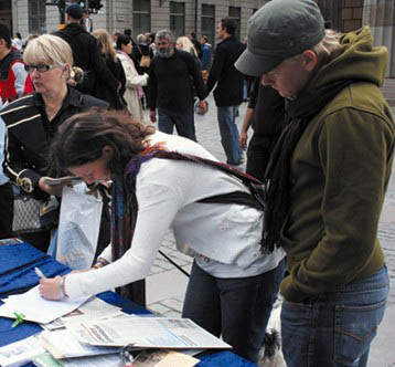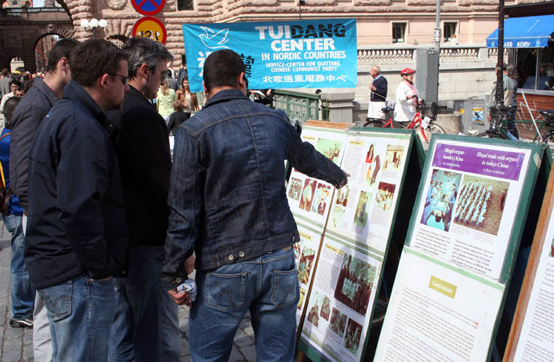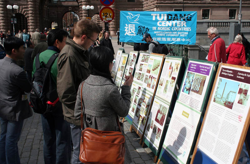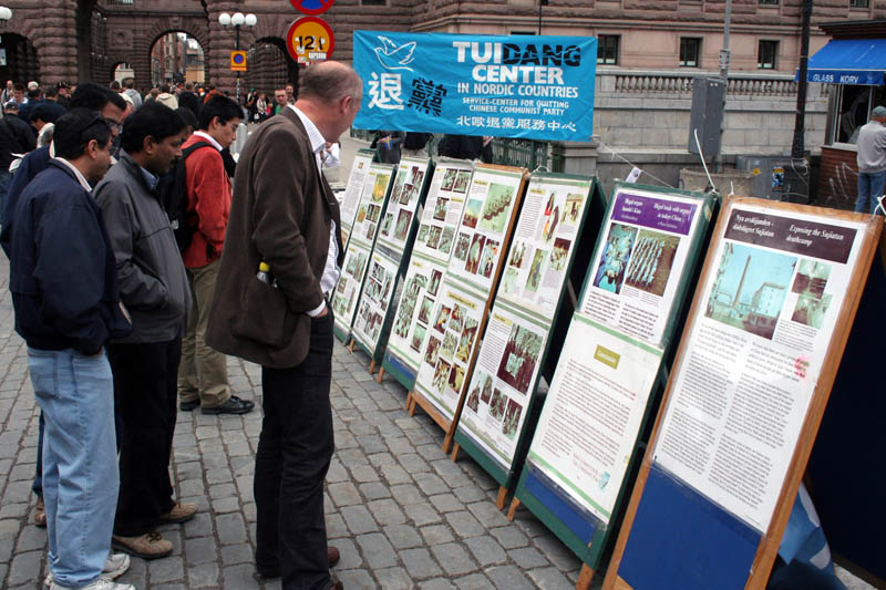 还有一对瑞典的老年夫妇看完了展板后,不住的摇着头说“它们(中共)真是太坏了!”然后就走到签字桌前郑重的签上了各自的名字。