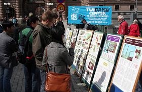 ![]() 人们在真相展板前了解中共所犯下的滔天罪行 |