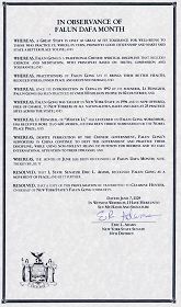鉴于,法轮功于一九九六年开始在纽约免费教功,超越民族、种族和年龄的界限,现在纽约有二十五个炼功点;