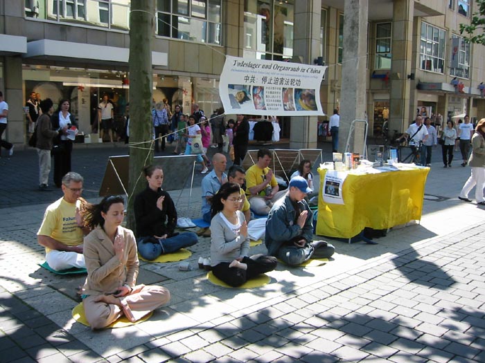 路过的行人纷纷驻足,好奇的观看法轮功学员演示的功法,有的仔细观看酷刑演示展板,有的上前同讲真相的学员询问交谈。不少当地民众在了解了法轮功遭受迫害的真相后, 纷纷签名支持声援反迫害。