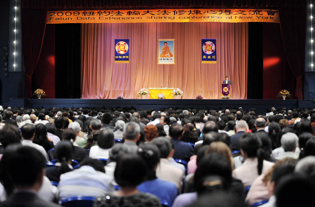 接下来法会播放了一段非常珍贵的纪录片:神韵艺术团二零零七年至二零零八年的巡回片段纪实以及神韵艺术团成员的修炼心得。团长,作曲家,编导,指挥,乐团,舞蹈团的大小演员们,真诚地交流着他们的修炼体会:救度众生是神韵艺术团每个人的神圣使命,坚定的信师信法,大法的神奇在每个人身上都有展现,艺术上的提高和心性的升华是相辅相成的。慈悲的师尊给了每个人太多太多,唯有精進实修,救度更多的众生。