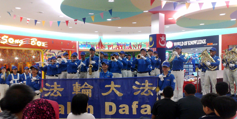 当天晚上,天国乐团又转赴其它的超级市场和百货商店,总共进行了五场演出。六月七日,从下午两点半开始天国乐团在新山市的演出进入了高潮。在一所人潮如涌的大型购物中心演出时,天国乐团演奏了三次《法轮大法好》,公众都被那优美的乐曲声所感动:一位马来人的女性收银员眼中闪现出激动的泪花,还有许多观众在演出结束后不愿意离去,继续跟随天国乐团到另外的楼层观赏演出。