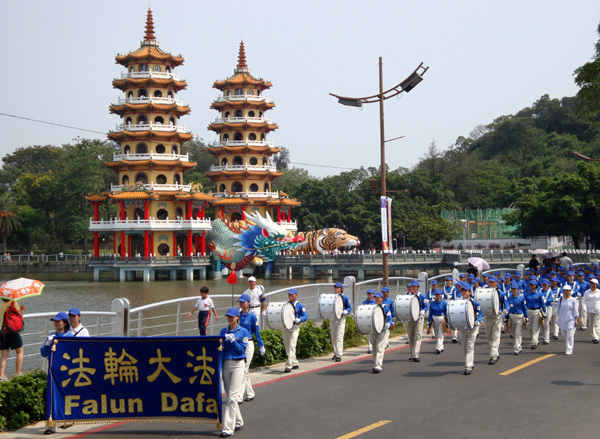 下午学员们前往左营春秋阁及西子湾定点表演及踩街活动,受到店家和游客的欢迎,同时吸引了大陆游客的目光。长期以来有一批法轮大法学员在风景区给游客讲清真相,尤其要告诉大陆同胞知道中共非法迫害法轮功的真相,欢迎到台湾来旅游并且认清中共邪恶的本质,退出党、团、队保平安。