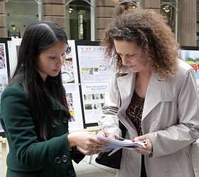 博妮(Bonnie Le Compte)和桑麦塔(Samantha Macintash) 是悉尼麦克丽学院记者专业的学生,她们认真地看展板上的资料。看到法轮功学员在中国被迫害的事例,她们很震惊,说:“这些发生在中国对法轮功学员的迫害太可怕了!”