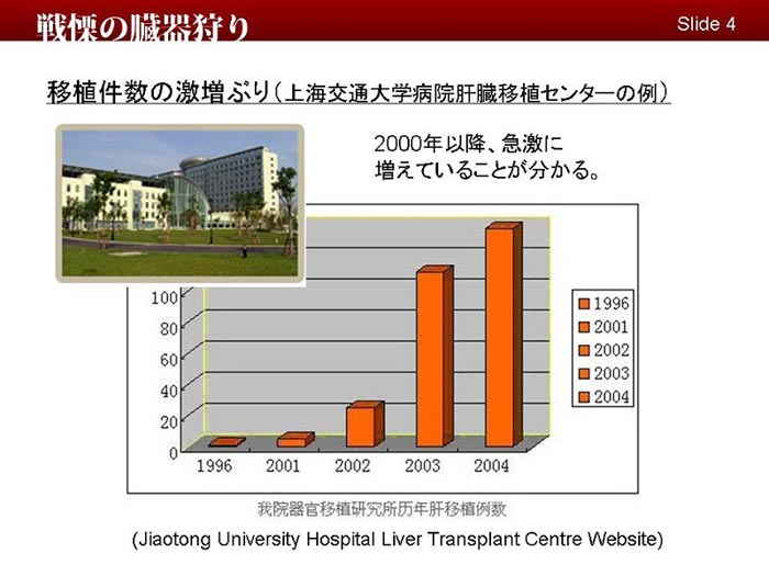 日本《月刊中国》杂志的总编鸣霞女士指出,日本人前往中国做器官移植,回国后不久的死亡案例也曾被多家媒体报导,而对于器官的来源却没有深入调查,残酷的事实,应该令更多的正义的人士及媒体站出来,为中国人权发声。
