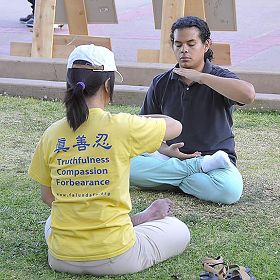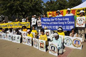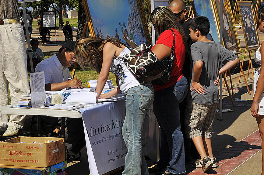 ![]() 美国民众签名反对中共对法轮功学员的迫害。 |