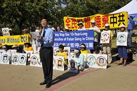 集会上,三位自己曾经受到迫害或家人遭到中共迫害的法轮功学员讲述了亲身经历的悲惨遭遇。
