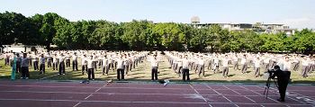 ![]() 图:二零零九年,印度首都德里(Delhi)警察训练大学的上千学生学炼功法 |