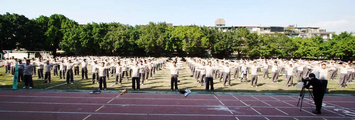 ![]() 图:二零零七年二月七日台湾电力公司运动会,台电职工学炼法轮功 |