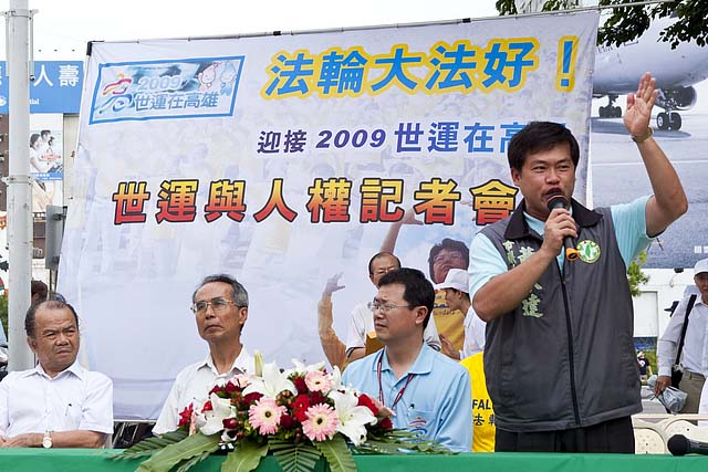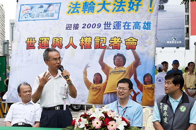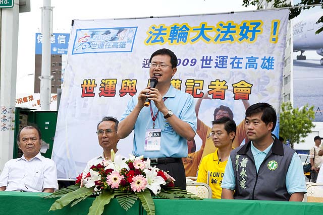 高雄市社会局长许传盛首先代表陈菊市长表达,对法轮功学员维护人权信念的敬意。他说:“世运会追求和平让世界更美好的精神,宗旨与法轮功‘真、善、忍”的信念是契合的。目前中共迫害法轮功学员是违反人性更是违反人权的。”