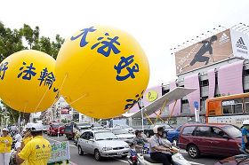 【明慧网二零零九年七月十五日】(明慧记者岳欣台湾高雄采访报导)为迎接即将在台湾高雄市举行的二零零九年世界运动会,南台湾近千名法轮功学员也从七月十四日起举行一系列活动,欢迎世界一百零五个国家的五千多名运动选手及贵宾的到来,同时也向他们展示法轮大法的美好,传播“真善忍”福音。