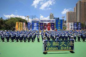 ![]() 法轮功学员参加游行 |