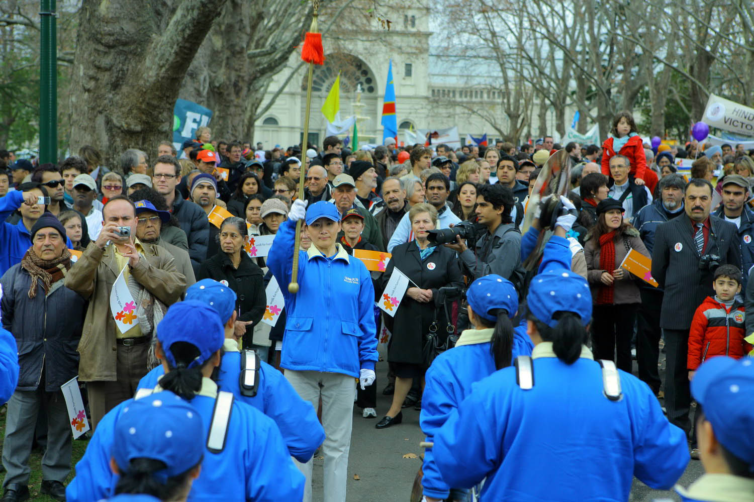 虽然天气预报有雨,但来自维省各个民族社区的约两百个团体,汇成超过五千人的遊行队伍,从Carlton公园出发,穿过墨尔本繁华的商业街Swanston街,最后到达市中心联邦广场。不同的肤色、五彩斑斓的民族服装,来自世界各地的维省人聚集在一起,人们怀着共同的心愿——不同种族的移民彼此关爱,象一个大家庭。
