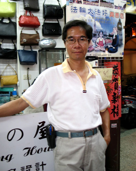 从事皮件精品生意的范国华,在自家的店里摆放法轮功真相资料,随时随地向上门的顾客介绍法轮大法的美好,同时揭露中共迫害,有的客人静静看着大法弘传世界及无辜遭中共迫害的展板,许多客人向他反映,“法轮功这么好,在大陆怎么遭到迫害,令人不解。”