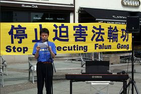 此外,来自哥德堡的电脑绘图设计师安德斯(Anders Eriksson)还自己作词作曲演唱,他用歌声向人们讲述着法轮功学员在中国遭受的酷刑,呼吁尽早制止迫害。