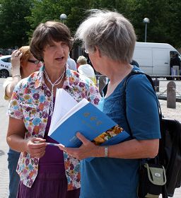 ![]() 法轮功学员向人们讲述在中国的迫害事实 |
