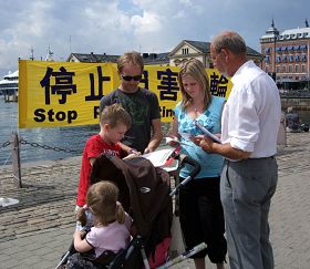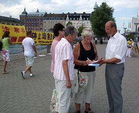 在哥德堡有一位刚刚从国内出来不到一年的华人女士,她说:“我就说嘛,法轮功肯定是好的,不好人家怎么那么多外国人都炼啊,人家也不是傻子啊。怎么就中国不让炼啊,肯定是有问题。这回我明白了,原来(中共)宣传的都是骗人的。”活动时还有不少的瑞典人对法轮功这个源自中国的传统功法很感兴趣,现场就要学功。