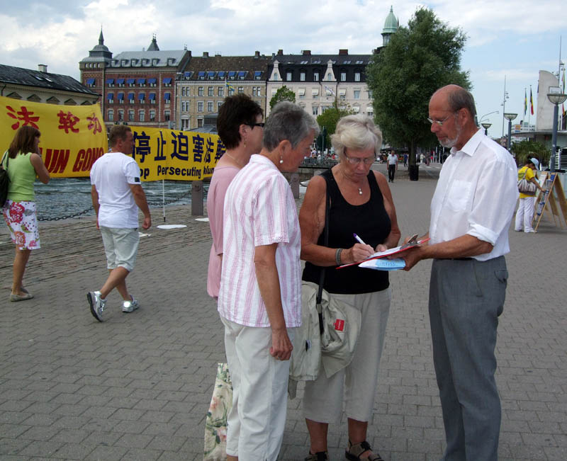 瑞典法轮功学员的巡回讲真相活动,自二零零九年七月十一日从北欧的文化古城——丹麦首都哥本哈根开始,目前已经完成了瑞典南部马尔默(Malm)、博里霍尔姆(Borgholm)、赫尔辛堡(Helsingborg)、哥德堡(Gteborg)、林雪萍(Linkping)五个大、中、小城市。