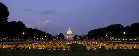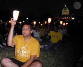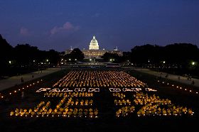 ![]() 法轮功学员在美国国会山与华盛顿纪念碑之间,举行反迫害十周年烛光夜悼。 |