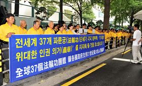 ![]() 南韩法轮功学员在南韩中央政府行政大楼集会 |