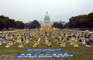 ![]() 七月十七日上午,上千名法轮功学员在国会山庄集体炼功。 |
