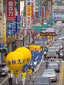 ![]() 盛大的法轮功游行队伍有如巨龙般,给桃园民众带来惊奇、新鲜。 |