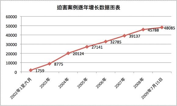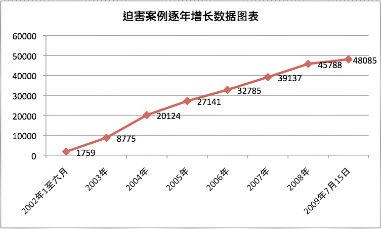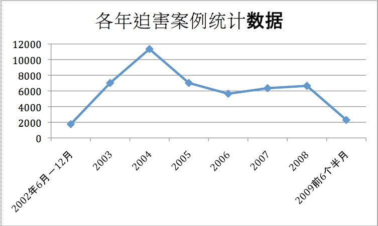 十年来,中国大陆的法轮功学员们以巨大的付出,冲破中共的信息封锁,不断地把一个个骇人听闻的迫害血案送到明慧网。十年来,明慧网所获得和报道的第一手迫害案例数量惊人,迫害的残酷程度令人发指。明慧资料馆根据这些案例的归类整理工作浩繁。本文所能提供的,是根据明慧网二零零二年六月一日至二零零九年七月十五日报道的迫害案例所收集整理的迫害案例的统计数据。从中可见,中共所发动、推行和持续的这场对法轮大法修炼人的迫害所涉及的地域之广,人数之多,迫害程度之残酷,是史上绝无仅有的。