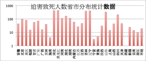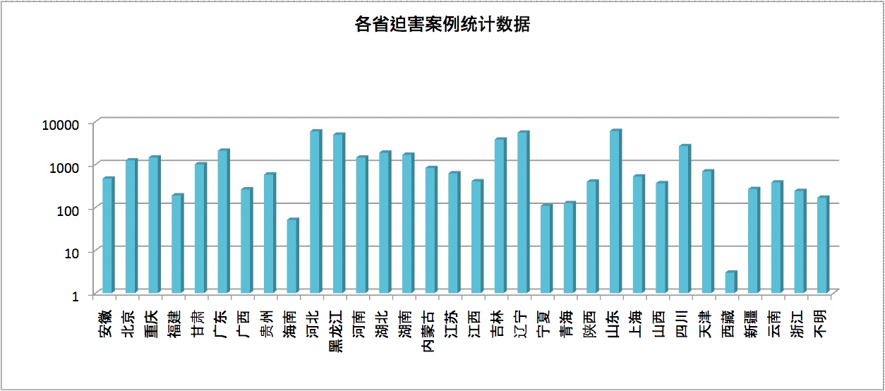 | 省份 | 迫害案例总数 | 省份 | 迫害案例总数 |