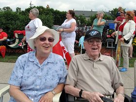 ![]() George Robinson 和Jenny Robinson夫妇俩观看游行 |