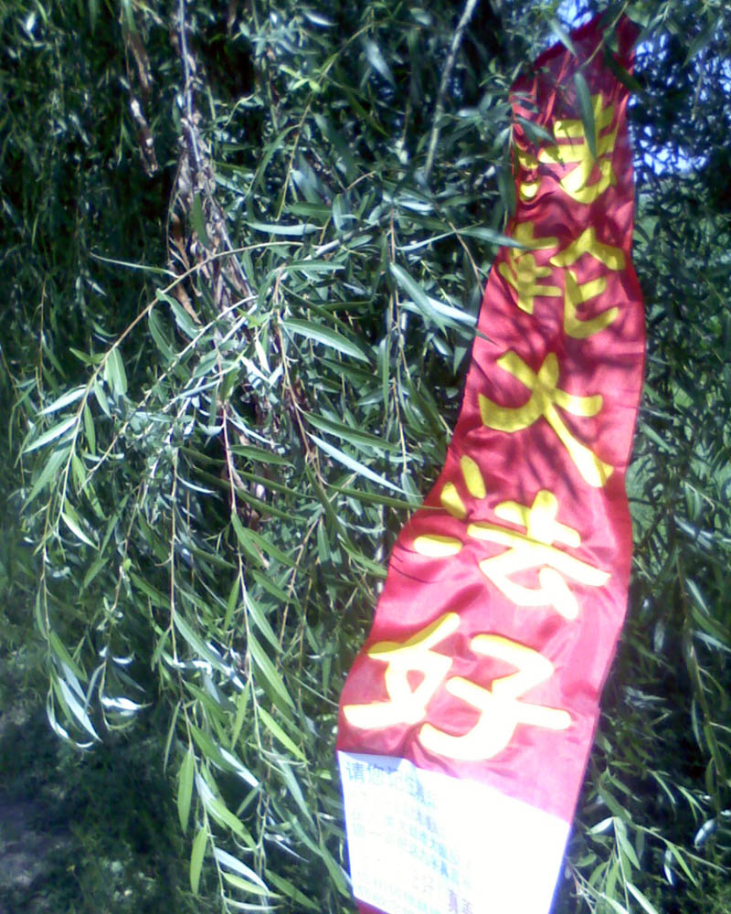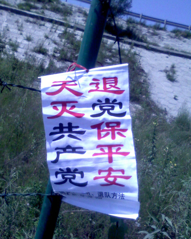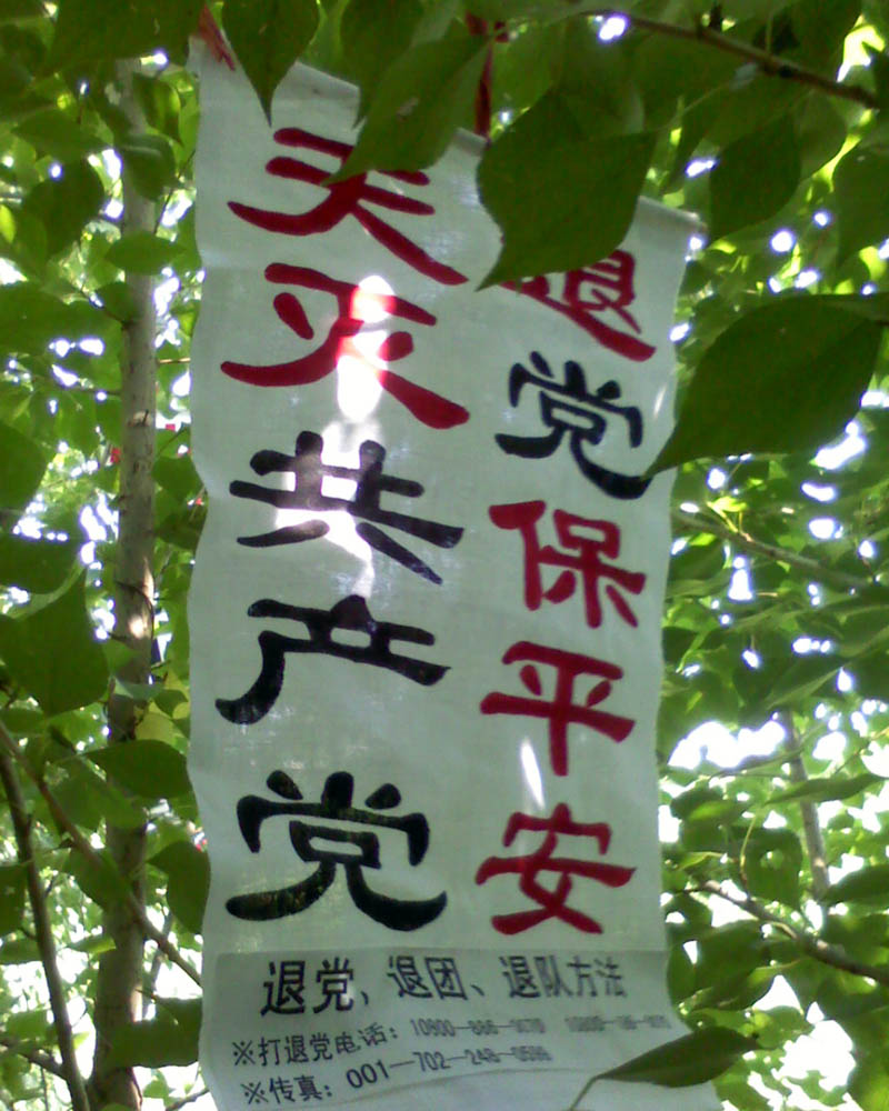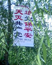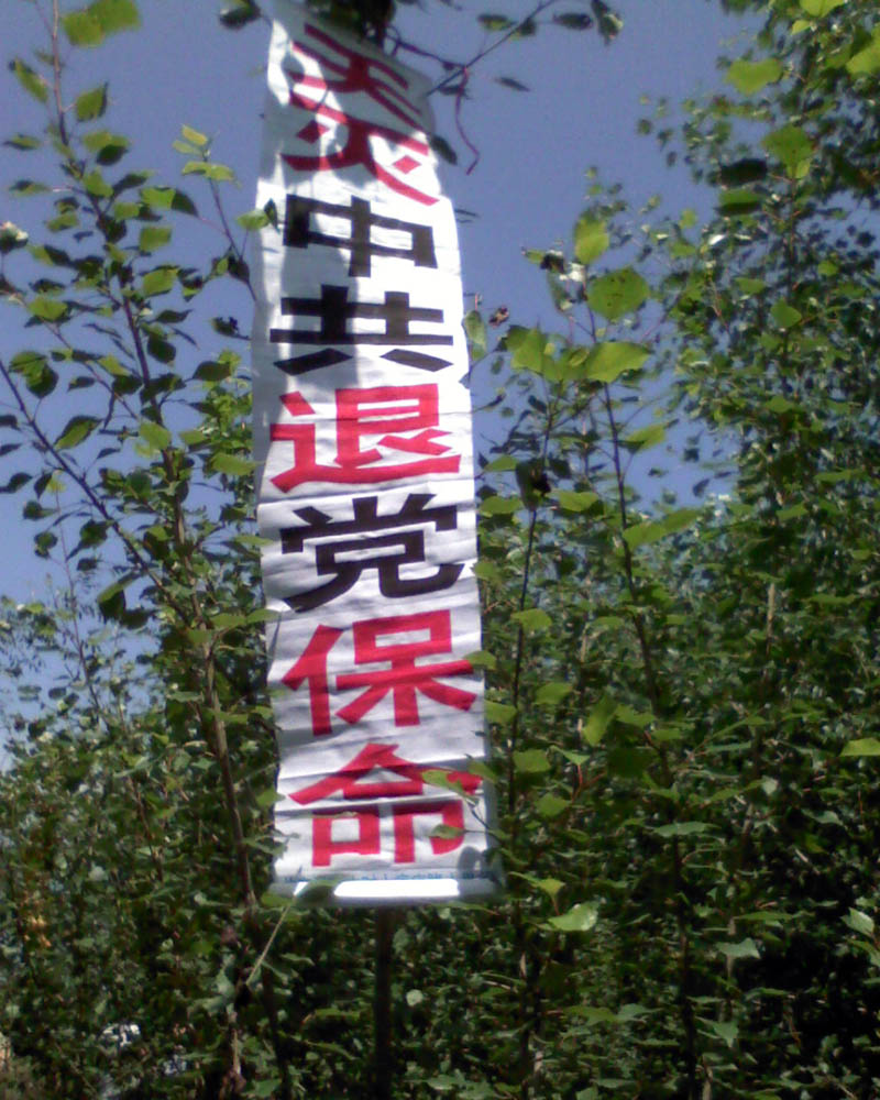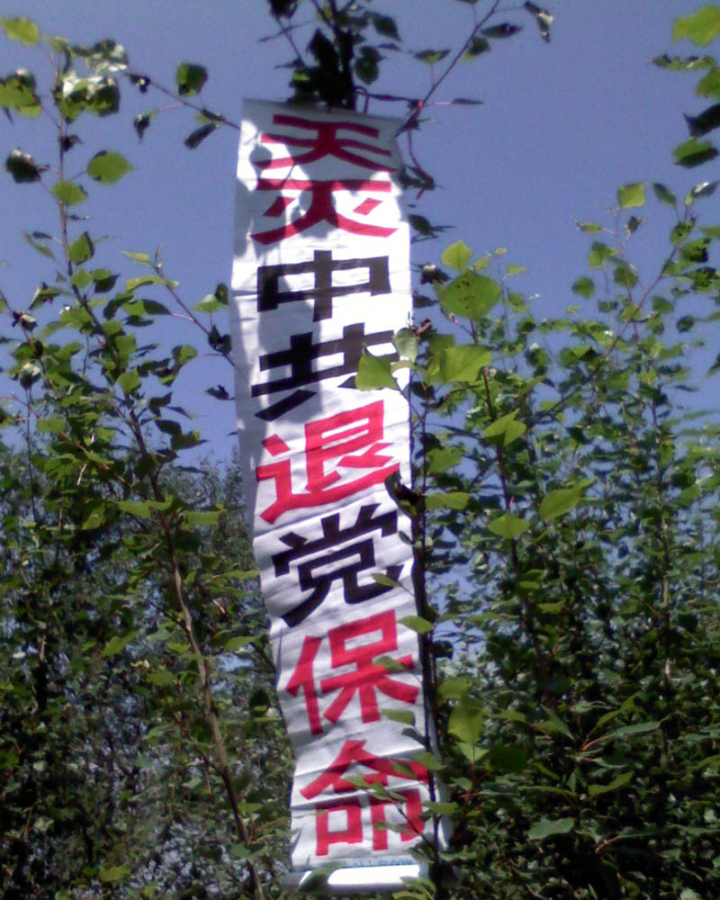 四川遂宁大型条幅做告示宣布江氏被告上国际法庭