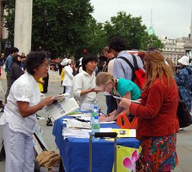 有位名叫约翰的老先生,逗留了一个多小时仍不愿离去。他阅读了真相展板,然后在征签表上签了名。他对记者说:“法轮功学员有权利炼功、有他们的信仰。这场迫害是邪恶的,中共是邪恶的。有一天,中共会知道,它是无法为所欲为的,人们会推翻它。”他还说,他在伦敦新年大游行上见过法轮功学员的游行队伍,挺喜欢。