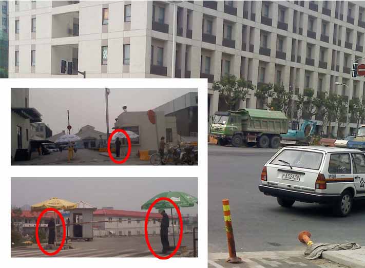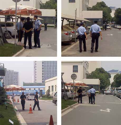 ![]() 园区口的保安和巡警,进出车辆都要登记车号和时间。 |