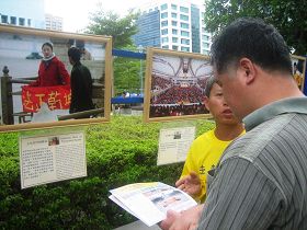 一位从大.纪.元;时报看到活动讯息,特地从新庄来了解真相的吴先生,一面看着图片,一面听着法轮功学员的解说,感慨地说,以前接收一些媒体对法轮功不实的报导,对法轮功有些误解,今天亲眼看到这些真相,真是不虚此行。