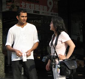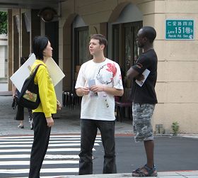 ![]() 信奉回教的路人(左)与二位学员交谈后解开心中的疑惑 |